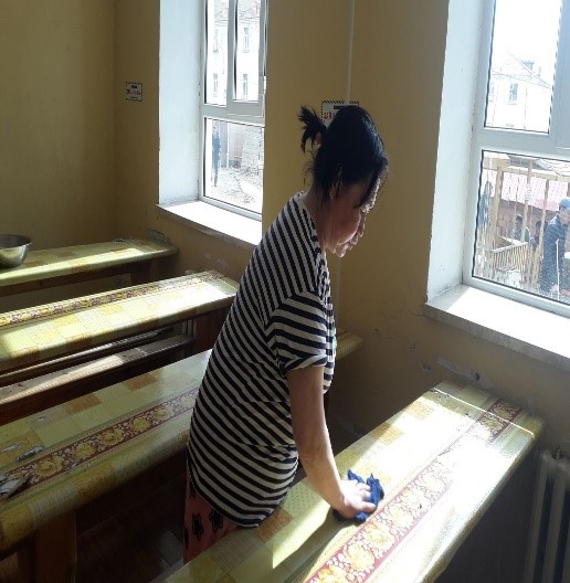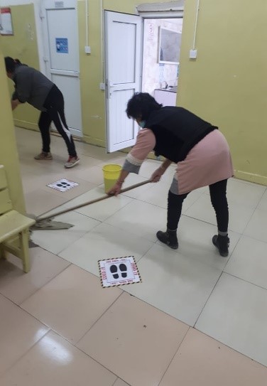 Мөн хоолны заал, гадна талбайн цэвэрлэгээ, 1 дүгээр давхрын ариун цэврийн өрөө, коридорийг цэвэрлэх хуваарийн дагуу цэвэрлэж байгаа бөгөөд 7 хоногт 2 удаа ариутгал, халдваргүйжүүлэлтийг хийж байна.