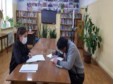 Ажлын өдөр бүр номын санд карт 10:00-10:30 минутанд нээн, ном олгож,16:00-16:30 минутын хооронд номын карт хаах цагийн хуваарь баримтлан ажиллаж байна. Мөн номын карт 2 иргэнд шинээр нээж, гэрээр олон хувьтай ном олгож хэвшсэн. Мэдээллийн самбарт жижүүр багшийн ажлын чиглэл, номын сангийн ном буцааж өгөөгүй иргэдийн нэрс,гадна болон дотор цэвэрлэгээний хуваарь, коронавирусээс урьдчилан сэргийлэх зөвлөмж зэргийг байршуулсан.