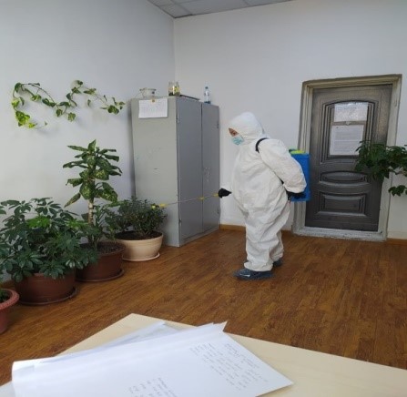 Хуваарийн дагуу цэвэрлэгээ үйлчилгээнд хамруулан, хөнжил гудас салхинд тавих, өрөөний агаар сэлгэлтийг цаг тутамд 15-20 минут хийж маскийг тогтмол хэрэглүүлж хэвшсэн. Халдваргүйжүүлэлтийг 1,3.5 дахь өдрүүдэд тогтмол хийж, өрөө тасалгаанд 2 , гадна ариун цэврийн өрөөнд 1 удаа хийсэн.